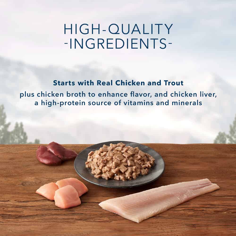 Blue Buffalo BLUE Wilderness Kitten Wild Delights Flaked Chicken and Trout Wet Cat Food Ingredients: