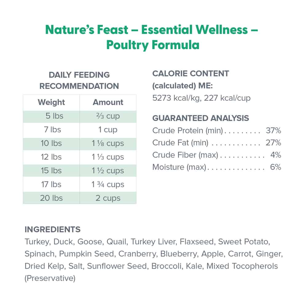 | Dr. Marty Nature’s Feast Essential Wellness Poultry Premium Freeze-Dried Raw Cat Food is formulated to meet the nutritional levels established by the AAFCO Cat Food Nutrient Profiles for adult maintenance. |