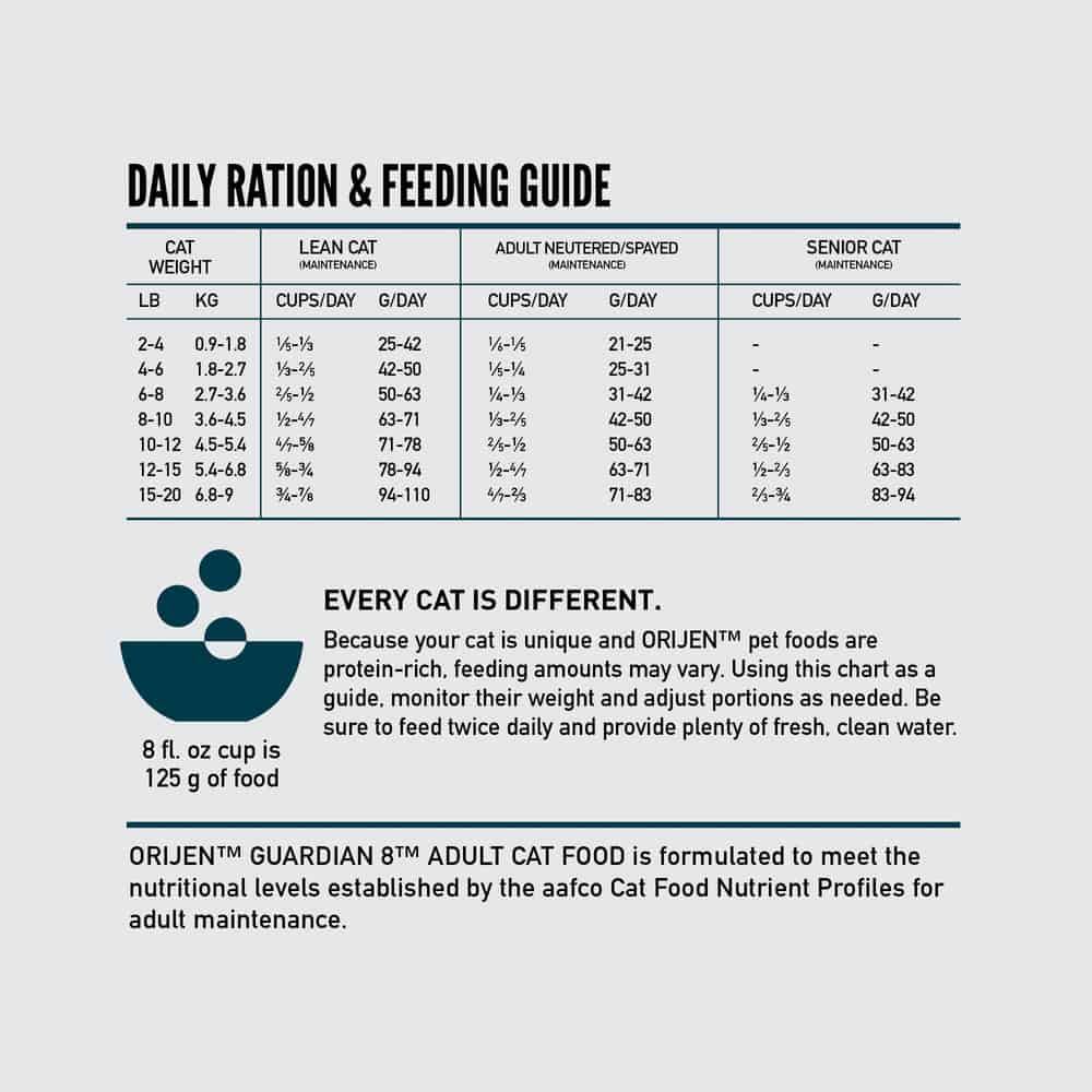 ORIJEN Guardian 8 Dry Cat Food Dosage: