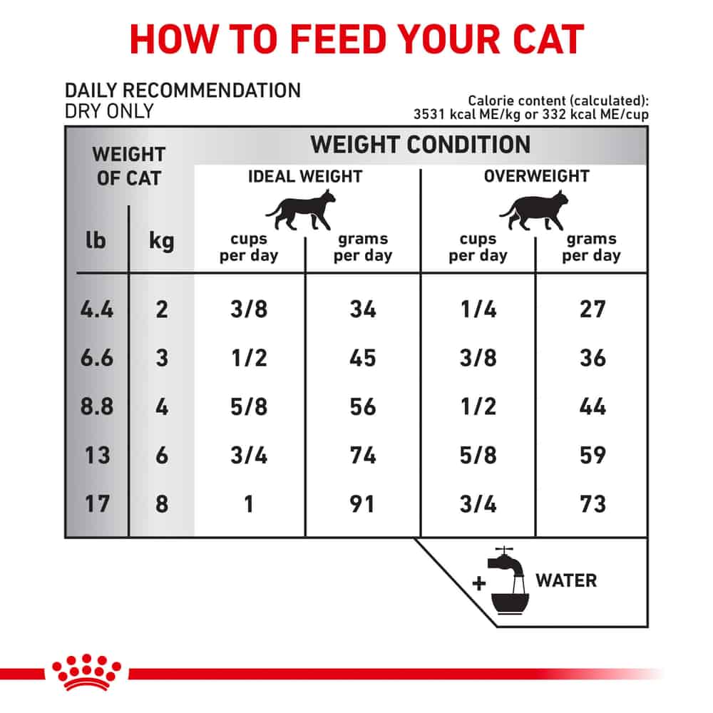 - Royal Canin recommends that your cat be fed 2 to 4 equal portions of the diet per day.