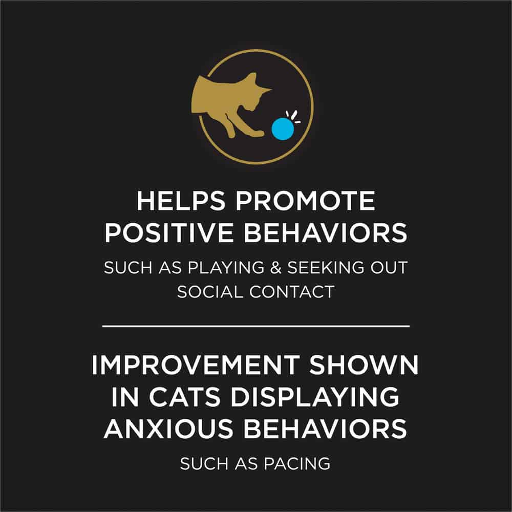 - Supports cats’ ability to cope with changes in routine and location, relieves cat stress and supports positive behaviors such as playing and seeking out social contact