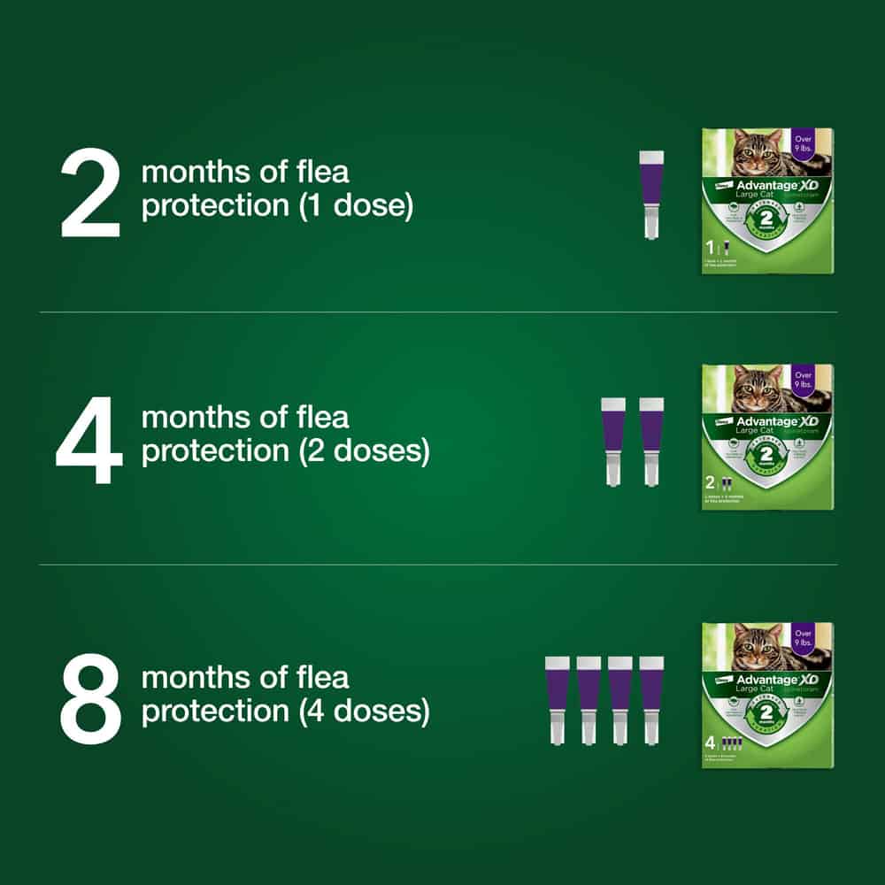 Advantage XD kills fleas through contact, so they don't have to bite your cat to die. Advantage XD continues to kill fleas for 2 months, which outlasts the typical six week flea life cycle and prevents reinfestations.