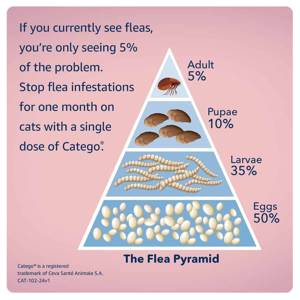 Catego for Cats provides convenient, fast-acting, and effective flea and tick control in cats and kittens. It is effective against all stages of the Brown dog ticks (Rhipicephalus sanguineus), American dog ticks (Dermacentor variabilis), Lone Star ticks (Amblyomma americanum), and Deer ticks (Ixodes scapularis). It also kills flea eggs, flea larvae, and chewing lice.