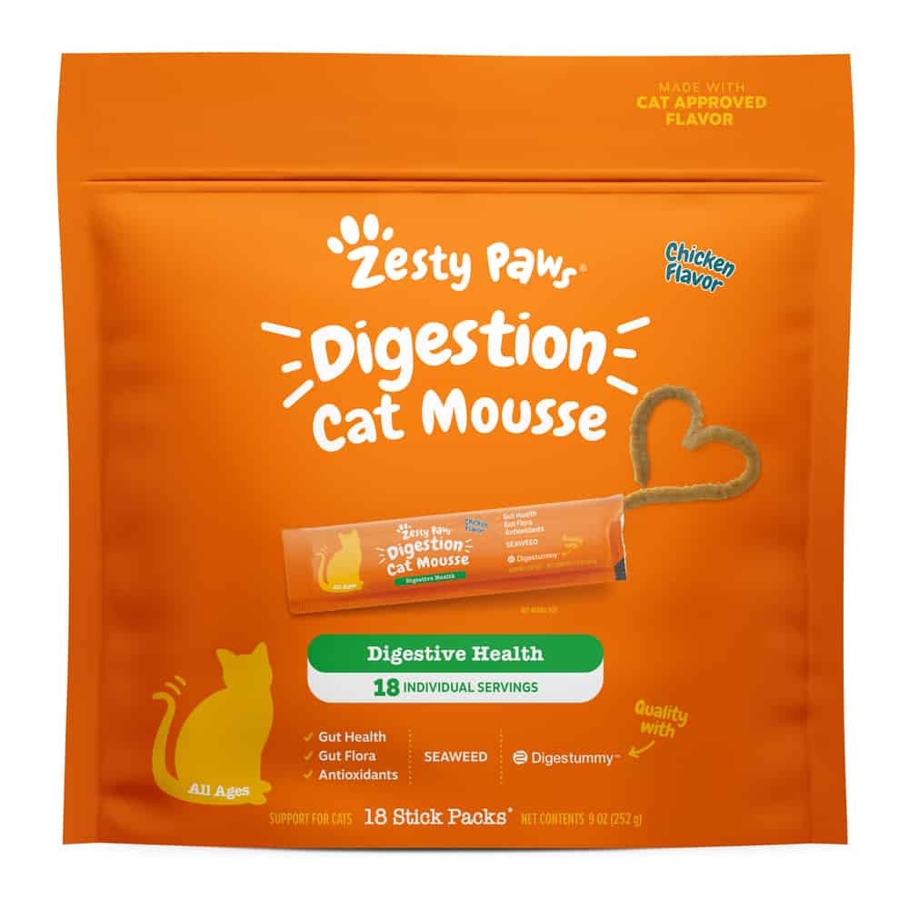 - Yummy Taste, Happy Tummy! - Zesty Paws Digestion Cat Mousse is a delicious way to support your cat's digestive function, gut flora, and healthy cell function to keep your feline purring happily.