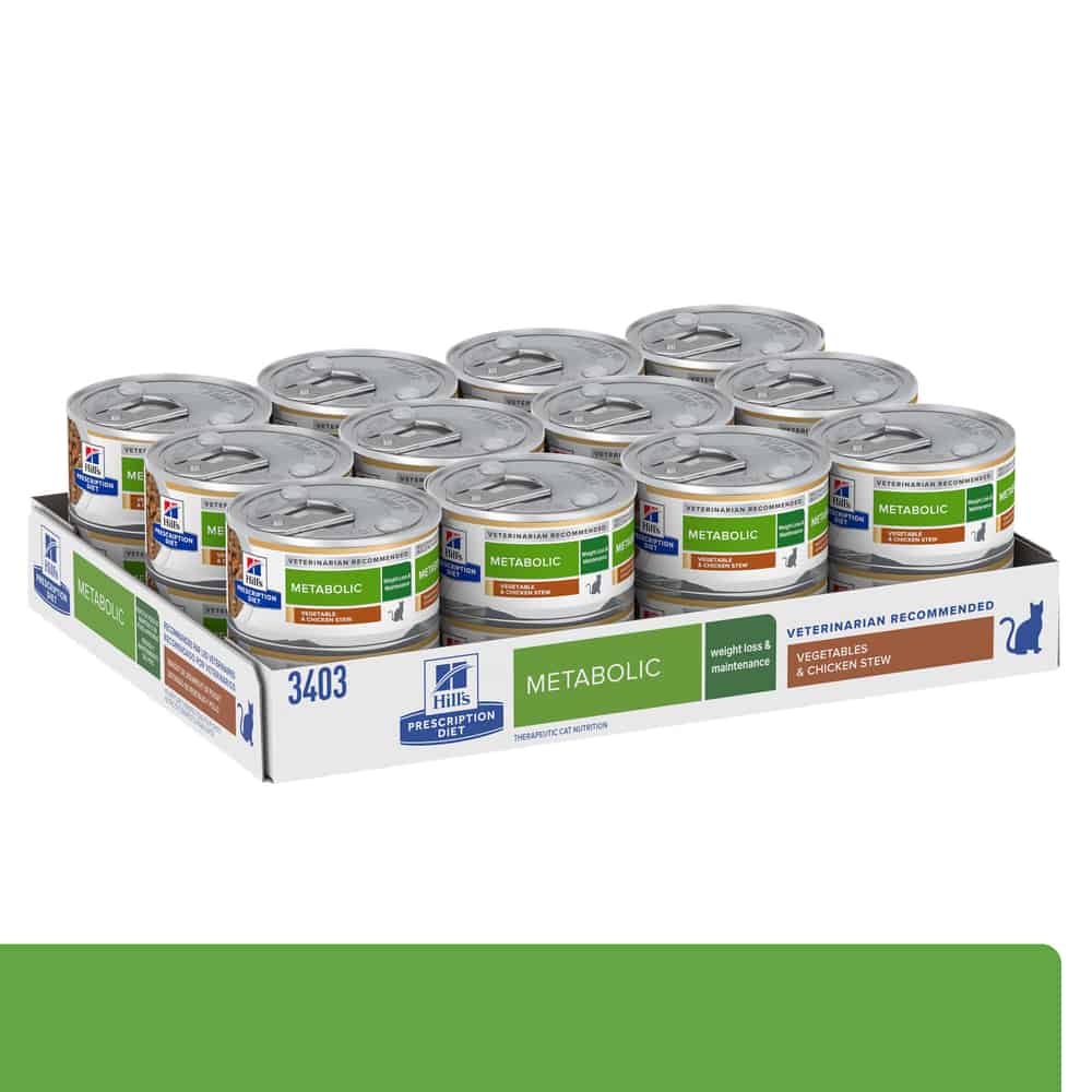 - Hill's Prescription Diet Metabolic Weight Management Vegetables & Chicken Stew Wet Cat Food is specially formulated to help cats lose weight and and keep the lost weight off naturally by activating their unique metabolism