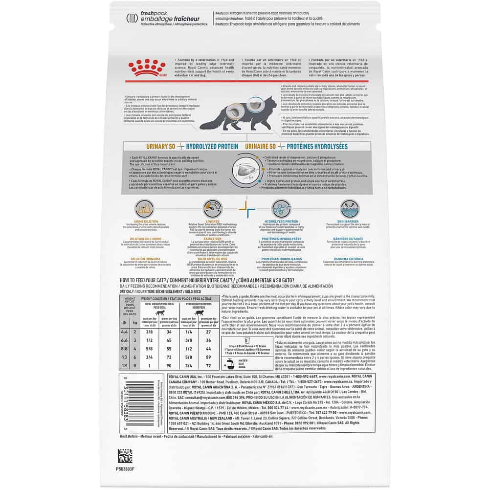 Royal Canin Veterinary Diet Feline Multifunction Urinary SO + Hydrolyzed Protein Dry Cat Food Directions: