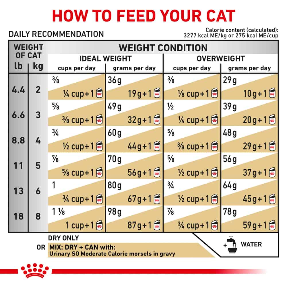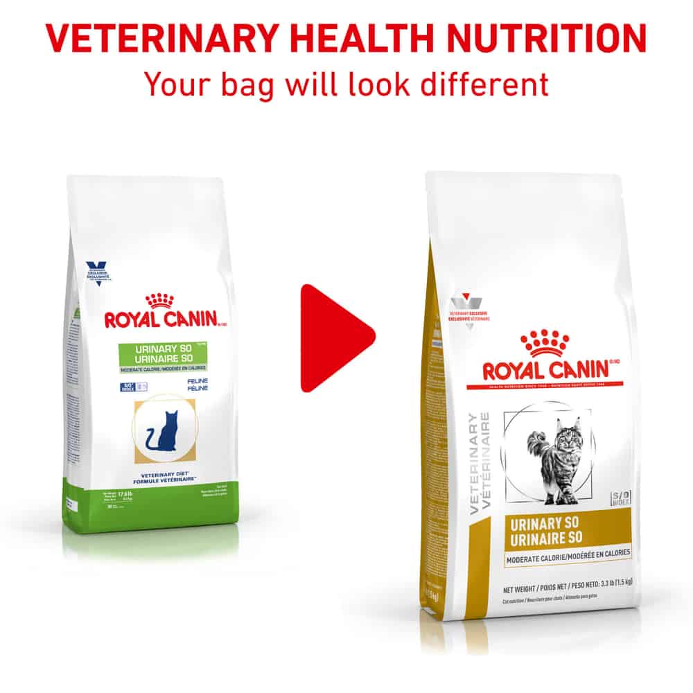 - When feeding Dry + Wet, this food is best mixed with Royal Canin Veterinary Diet Feline Urinary SO Moderate Calorie Morsels in Gravy Canned Wet Cat Food.