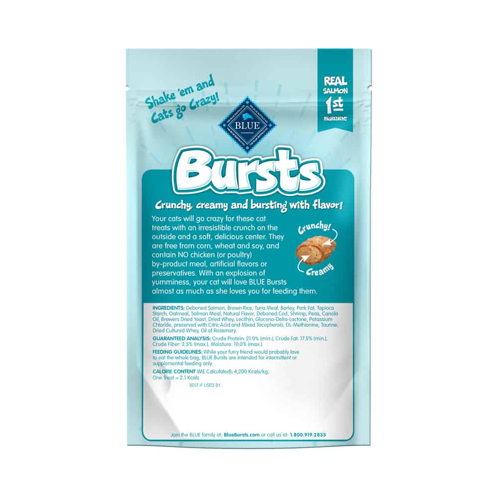 - While your furry friend would probably love to eat the whole bag, BLUE Bursts are intended for intermittent or supplemental feeding only.