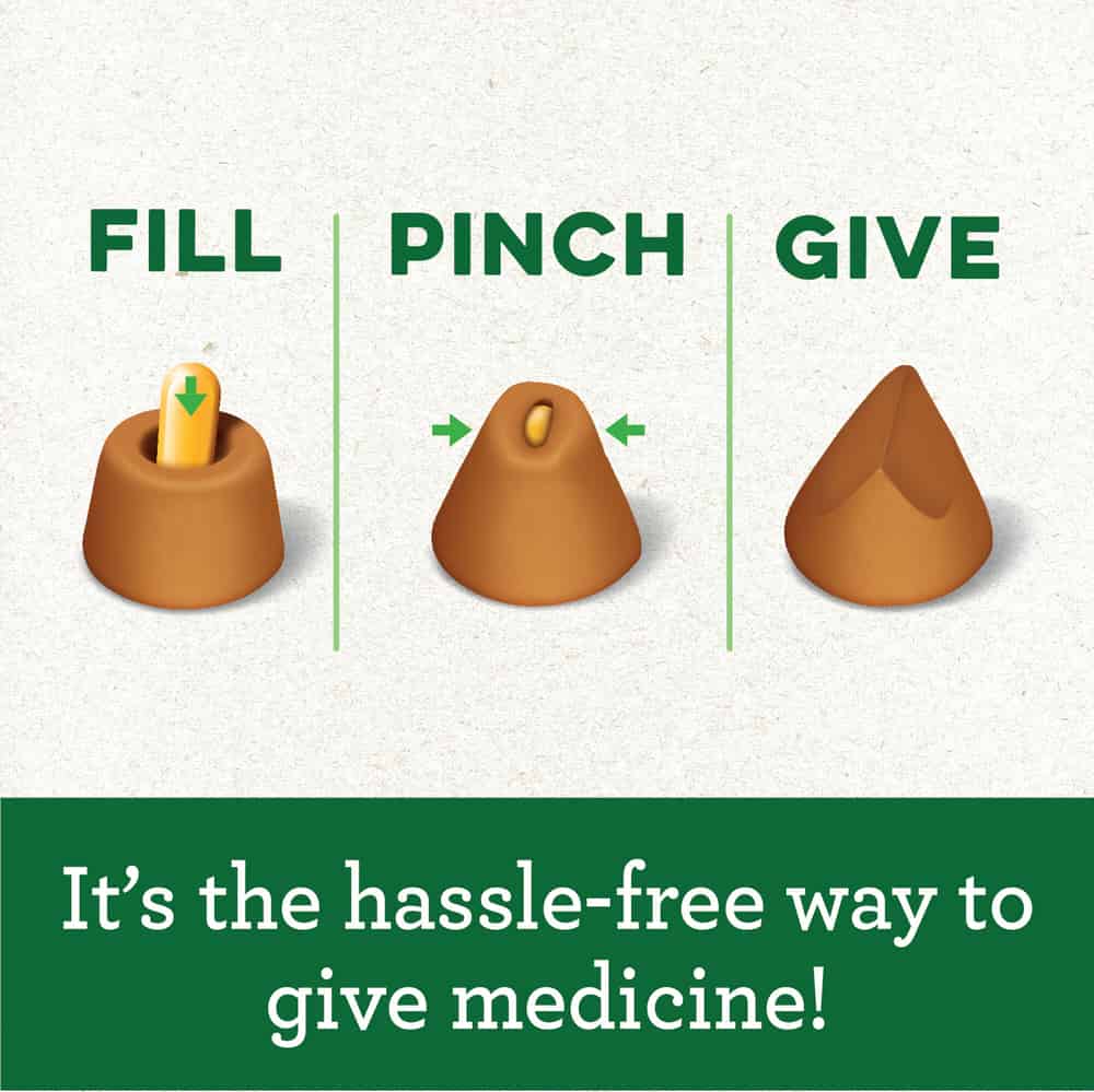 - FILL: To FILL hold the PILL POCKETS™ treat in one hand and place medicine into the built-in pouch.