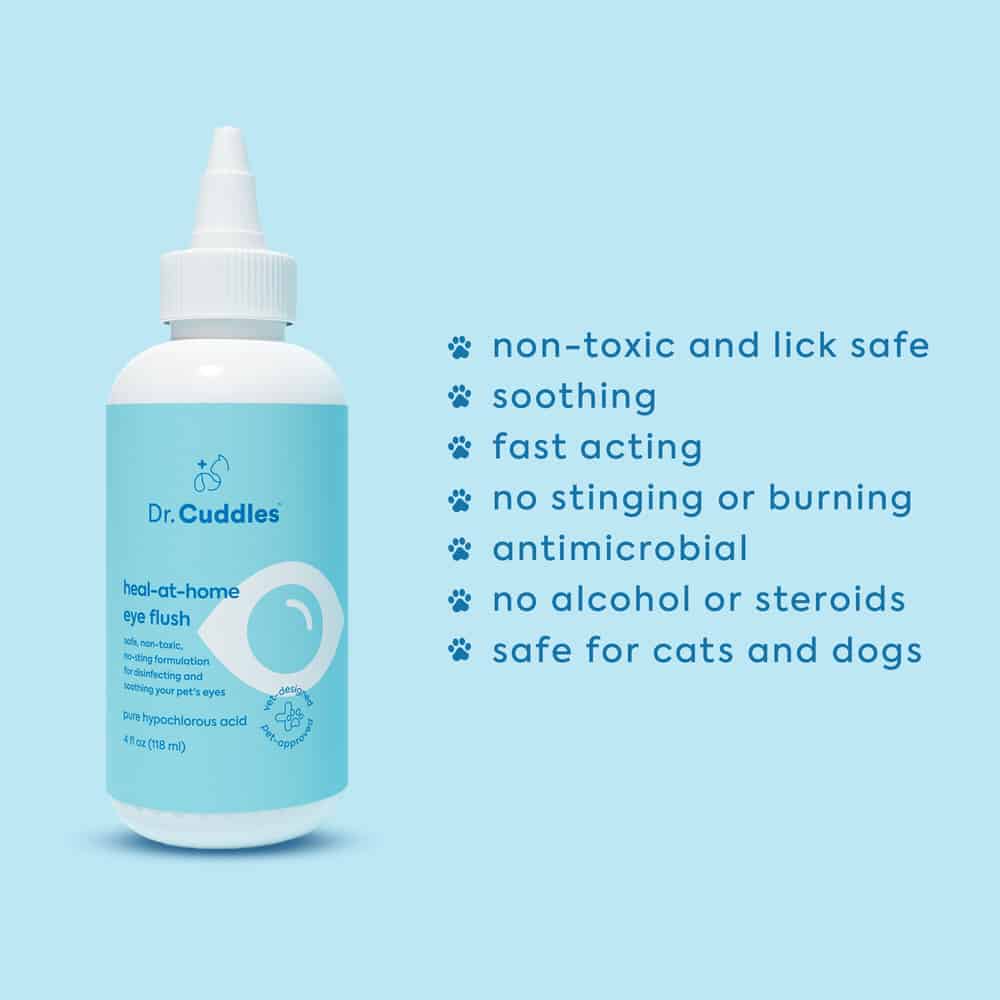 The only one who will love Dr. Cuddle's Heal-at-home eye flush more than you is your pet. This non-stinging, gentle formula brings comfort and clarity to your pet’s eyes, no matter the cause.