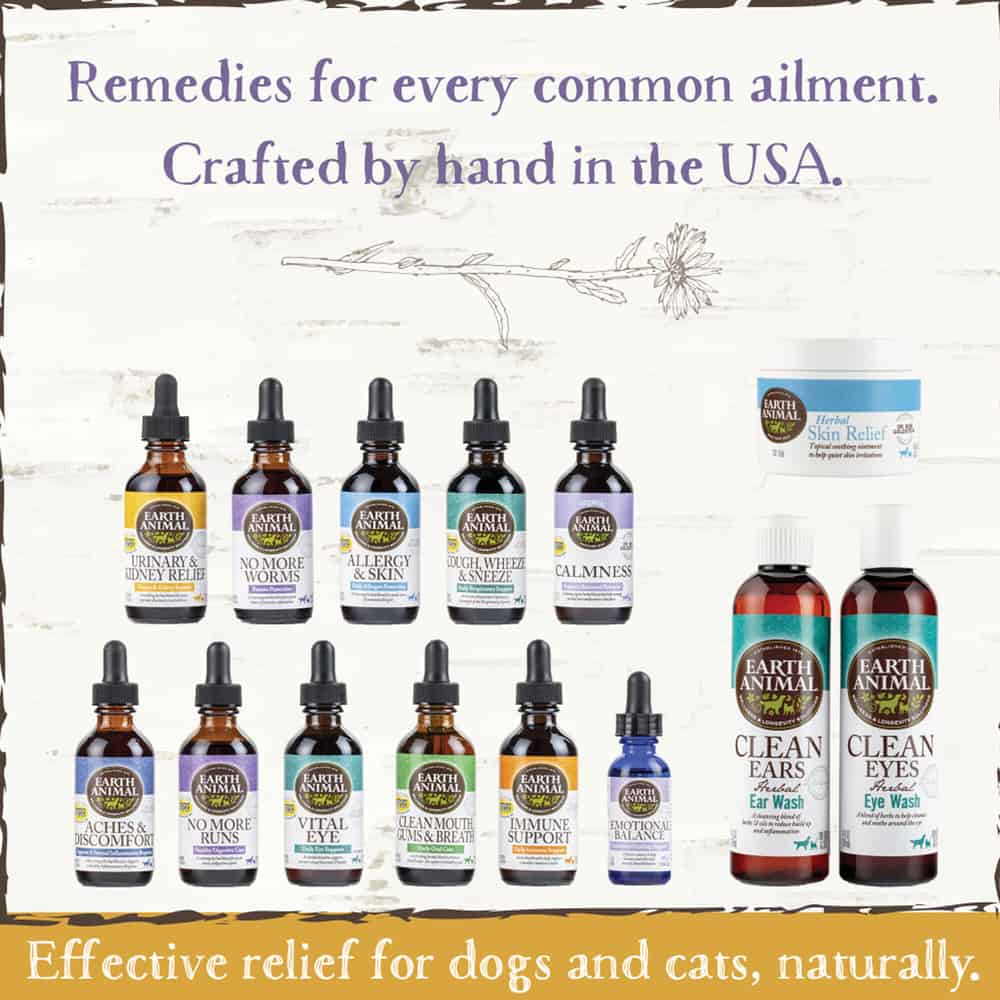Offering another way to heal, our Natural Remedies offer welcome comfort from the most common ailments and conditions dogs and cats experience. What's in them? Only the purest natural ingredients possible. Since 2002, Dr. Bob Goldstein has worked with master herbalist Kristy Haley of Crystal Garden Herbs in Bethel, VT to capture the ancient medicinal power of wild crafted herbs for true holistic healing. He has chosen the most common health conditions that affect dogs and cats today and thoughtfully created formulas made up of targeted herbs and flower essences for a true health benefit. These herbs are mixed with flower essences and soaked for over 30 days. The blends are then hand extracted and poured into a light sensitive tincture, crafting a remedy that addresses conditions dogs and cats suffer from day to day.