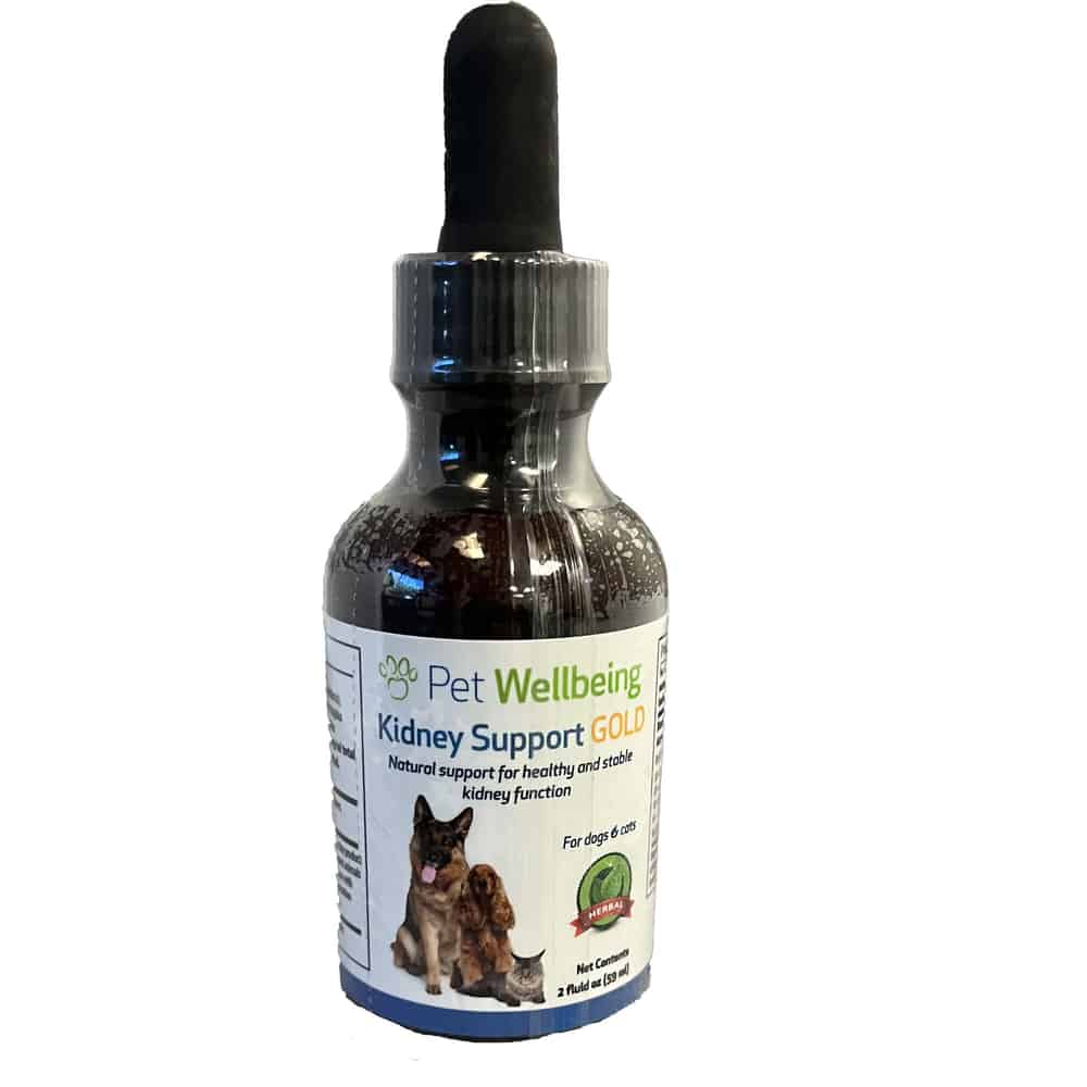 Pet Wellbeing Kidney Support Gold is an all-natural veterinarian-formulated supplement that promotes nephron health and fluid balance in pets with kidney disease.