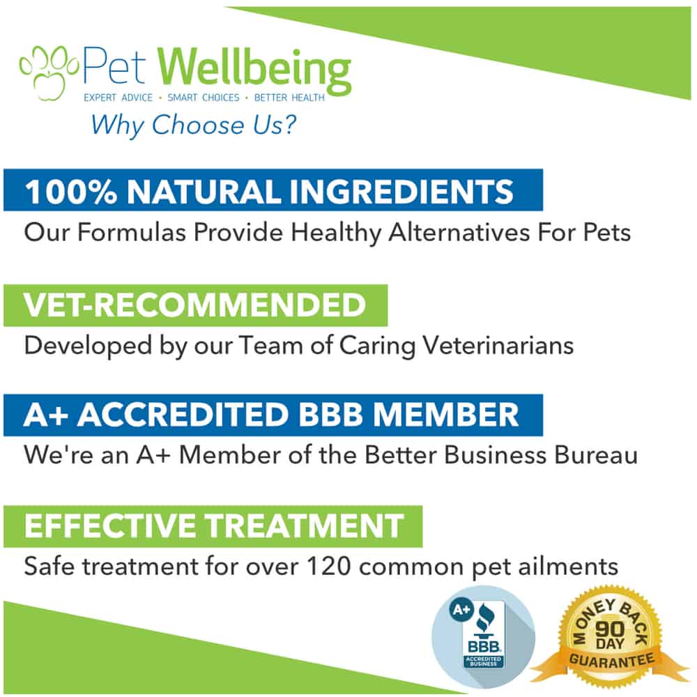 - Organic, Sustainably Cultivated, and/or Wild-Harvested Herbs: Pet Wellbeing's formulas are prepared with premium botanicals, ensuring the highest standards of quality and environmental responsibility.