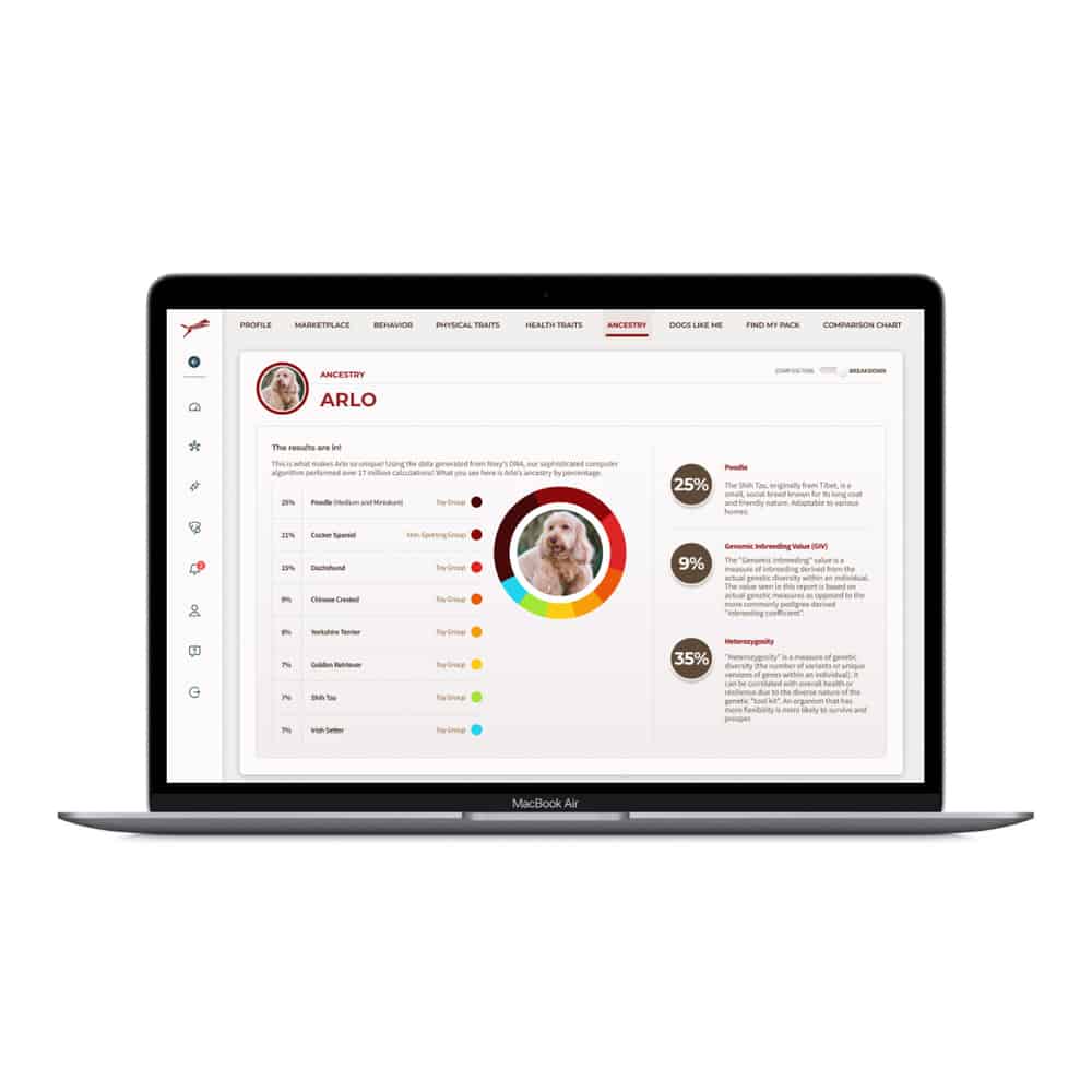 - Free Ancestry and Breed Composition Upgrade: Identifies and compares your dog’s breed composition, revealing their unique genetic heritage.