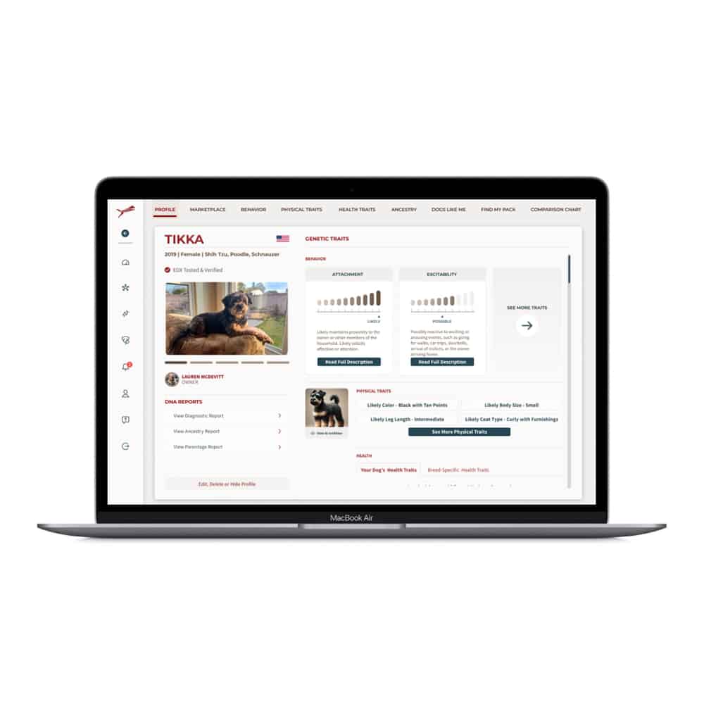 - Access to the Marketplace: Unlock personalized product recommendations tailored to your dog’s DNA, including food, products, services, and accessories along with unique Build-a-Dog tools and AI visualization (as features are released).