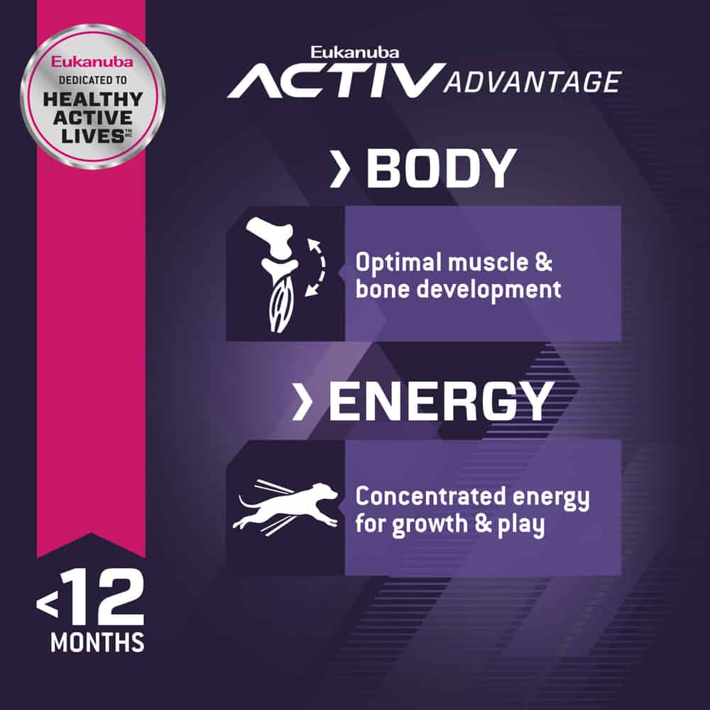 - Supports muscle growth and bone health in active pups with high-quality animal protein and optimized levels of calcium and phosphorous