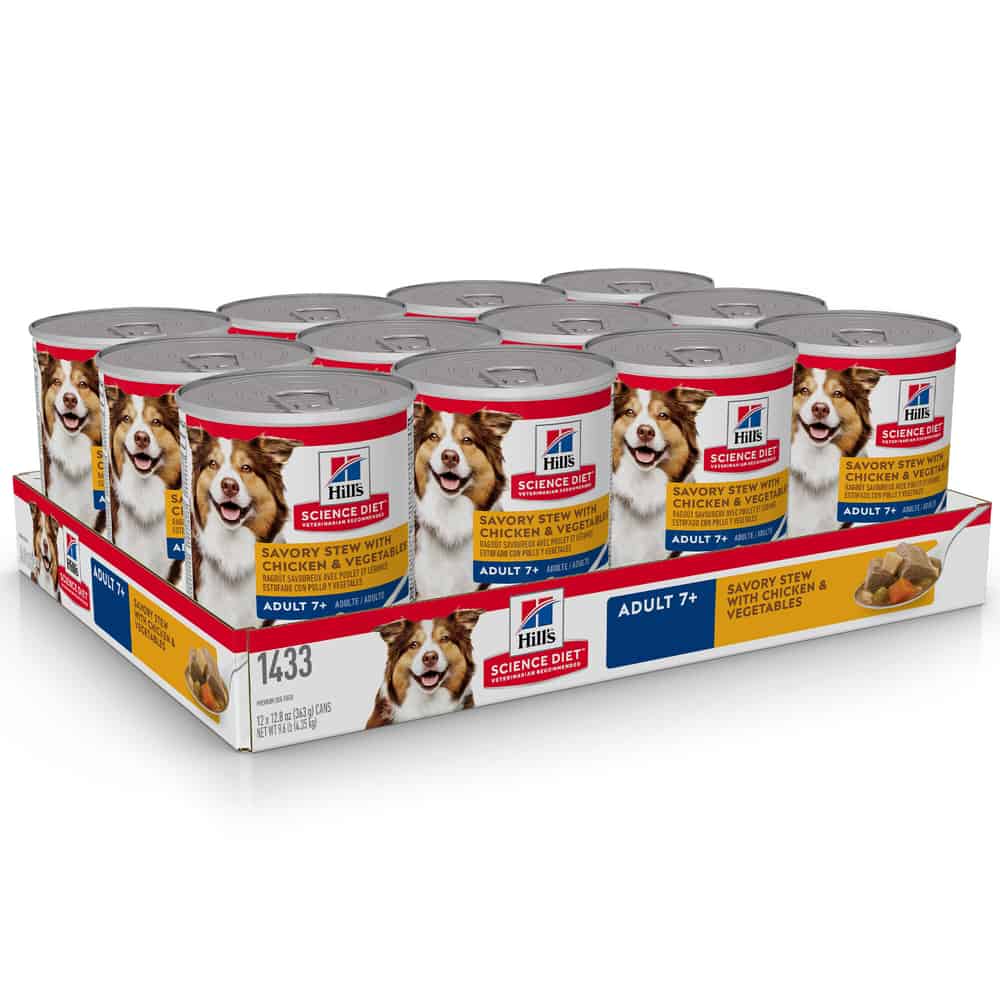 | Hill's Science Diet Adult 7+ Savory Stew with Chicken & Vegetables dog food is formulated to meet the nutritional levels established by the AAFCO Dog Food Nutrient Profiles for maintenance of adult dogs. |