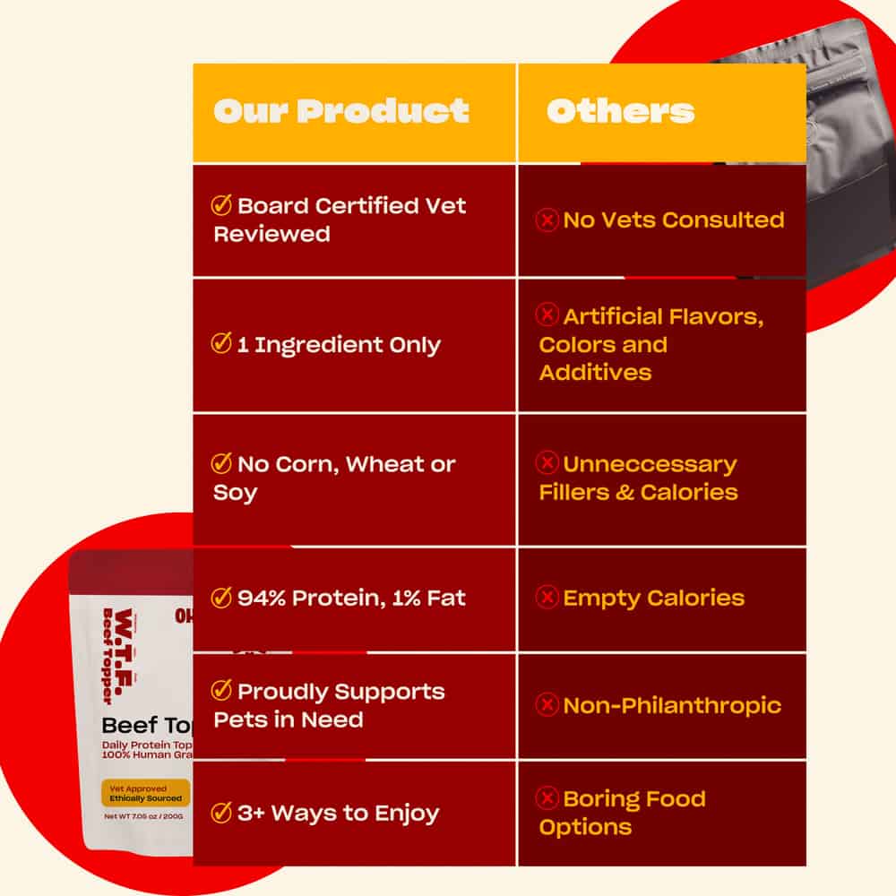 All-natural, single ingredient, free range beef topper reviewed by board certified veterinarians