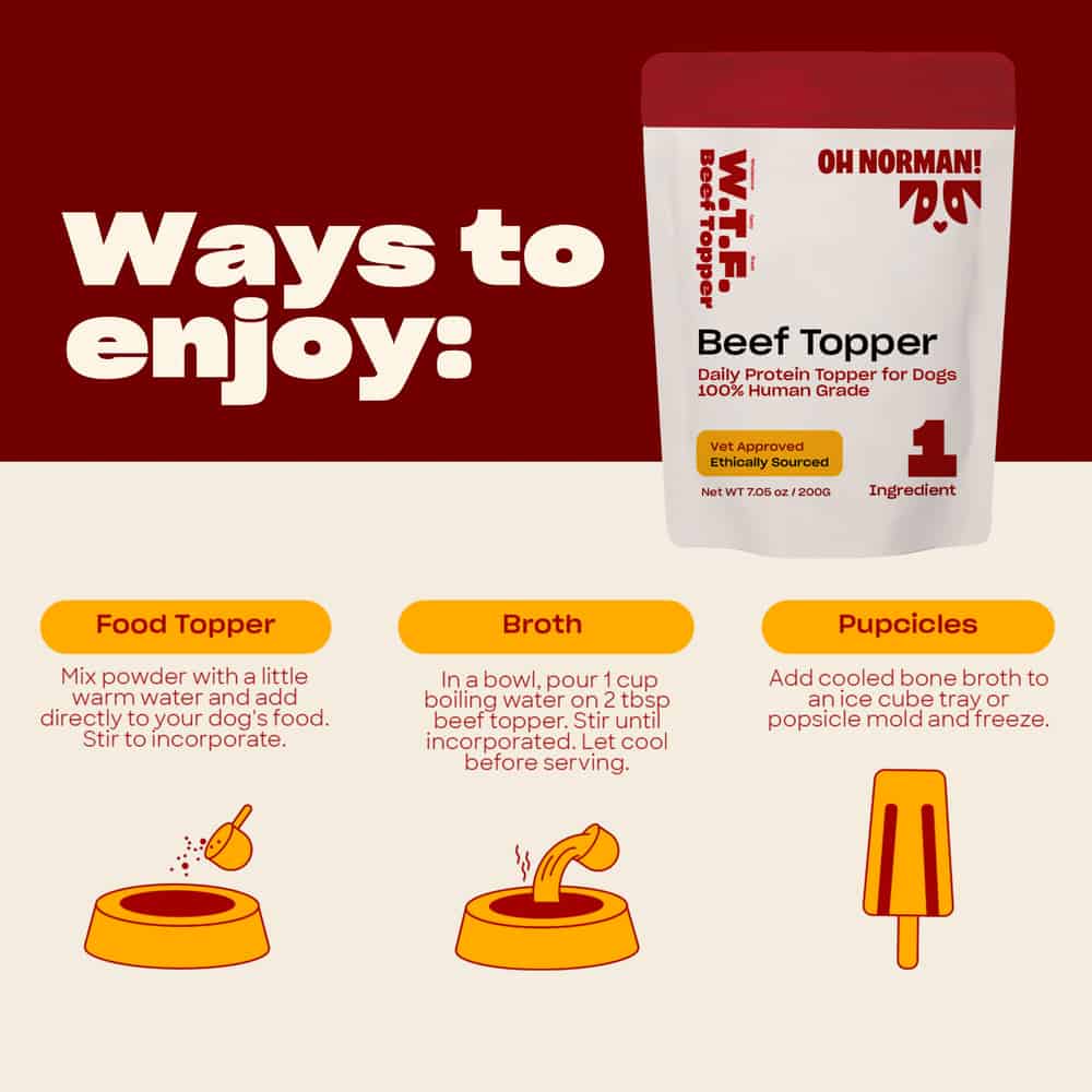 OH NORMAN! WTF Human Grade Beef Food Topper for Dogs Directions: