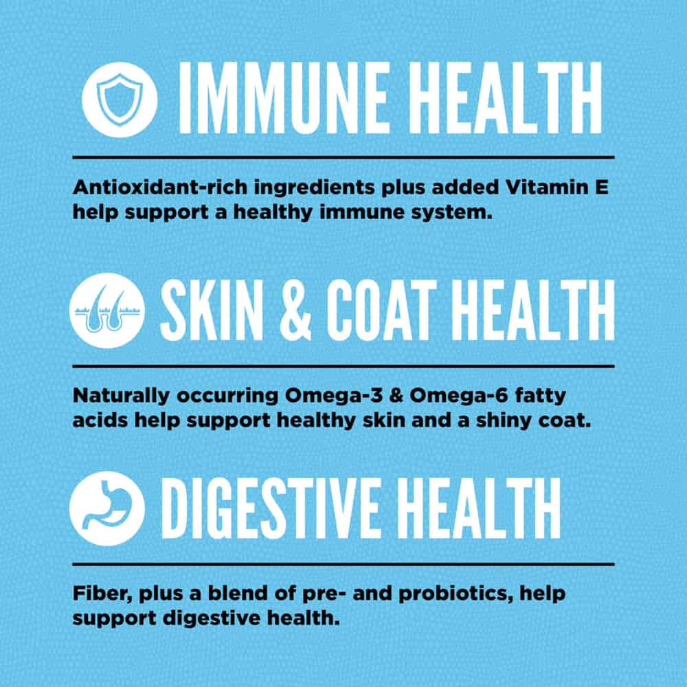 - Grain free* and chicken free dog food recipe offers a biologically appropriate diet packed with nutrients to help support your dog's immune system, skin, coat and digestion