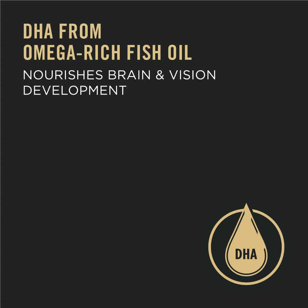 - DHA from omega-rich fish oil nourishes brain and vision development