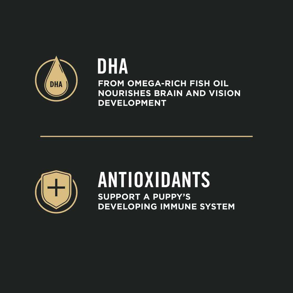 The tempting pieces of hard kibble and tender shreds in this chicken and rice dog food are sized appropriately for their mouth and teeth. DHA from omega-rich fish oil nourishes brain and vision development, and the antioxidant-rich formula supports a developing immune system. Purina fortifies this puppy food with guaranteed live probiotics for digestive and immune health, while phosphorus, calcium and other minerals build strong teeth and bones to help your puppy grow up big and strong.