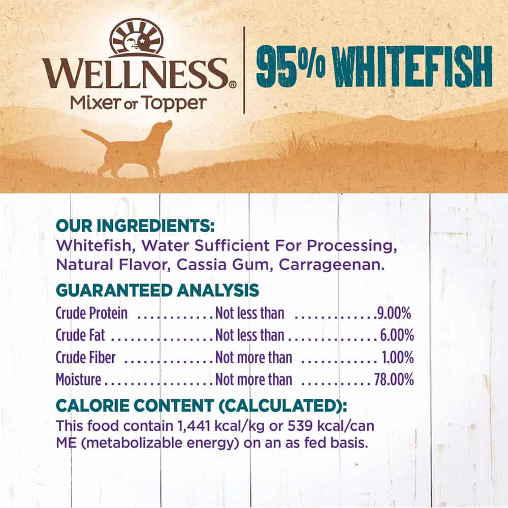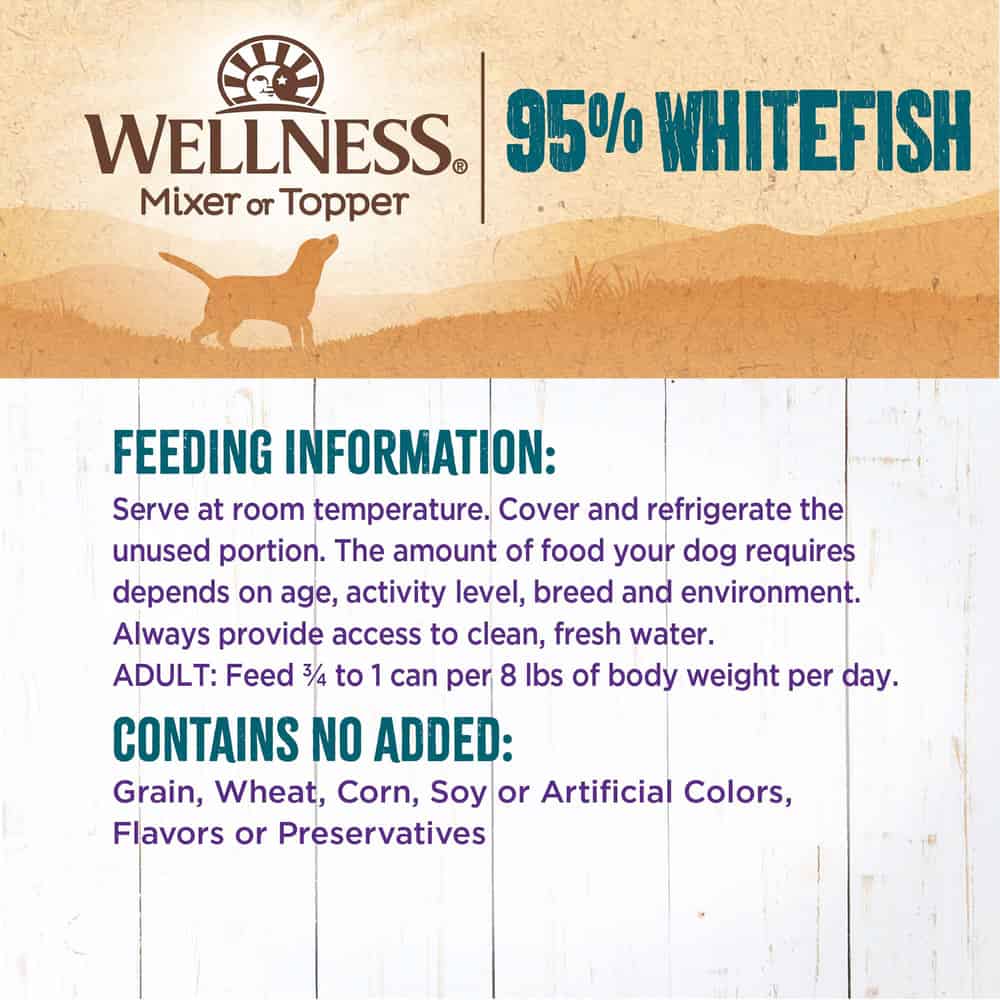 Wellness 95% Whitefish Grain Free Canned Dog Food Mixer or Topper Directions: