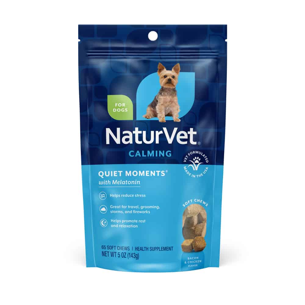 NaturVet Quiet Moments Calming Aid Plus Melatonin Supplement Soft Chews for Dogs