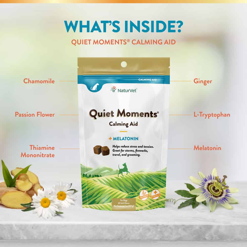 NaturVet Quiet Moments Calming Aid Plus Melatonin Supplement for Dogs Ingredients: