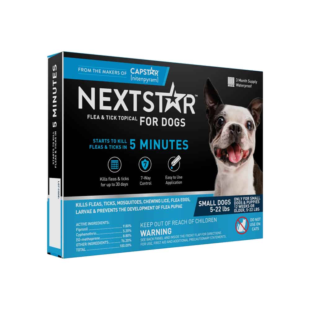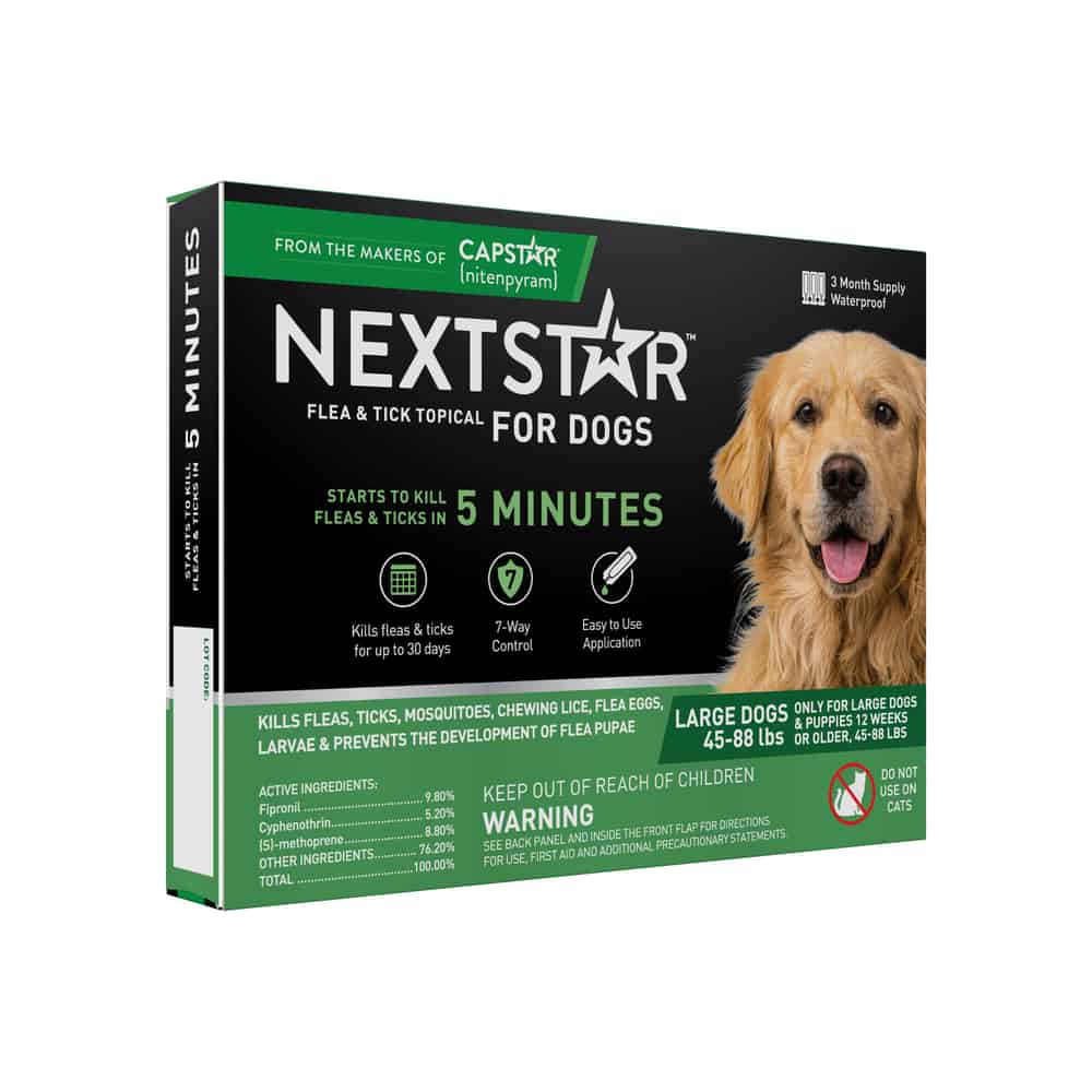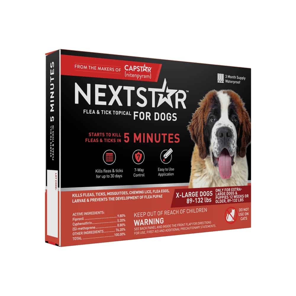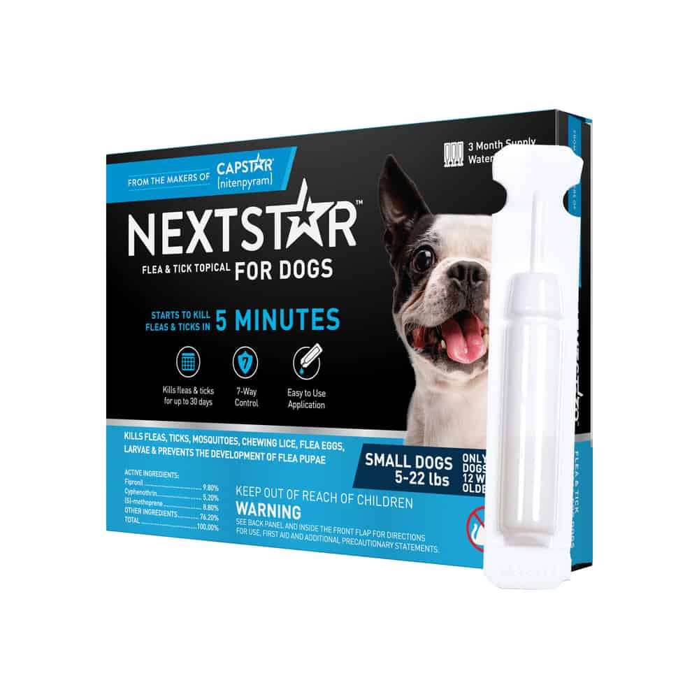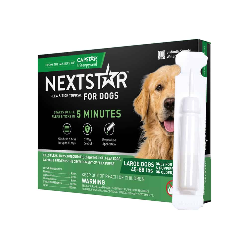- NEXTSTAR Flea & Tick Topical provides effective dog flea and tick control for 30 days with just one application. This fast-acting waterproof topical kills fleas, ticks, mosquitoes, chewing lice, flea eggs, flea larvae, and prevents the development of flea pupae