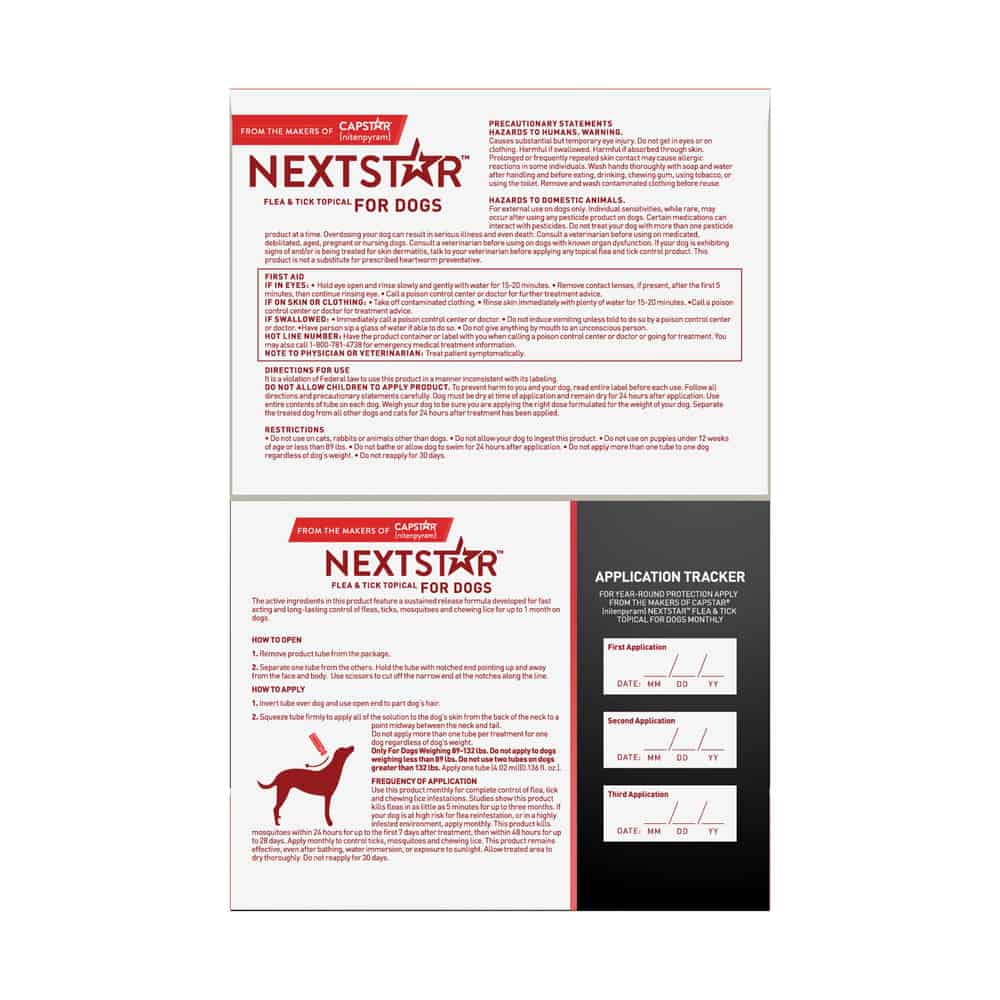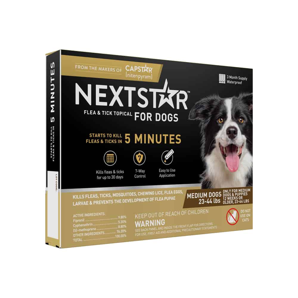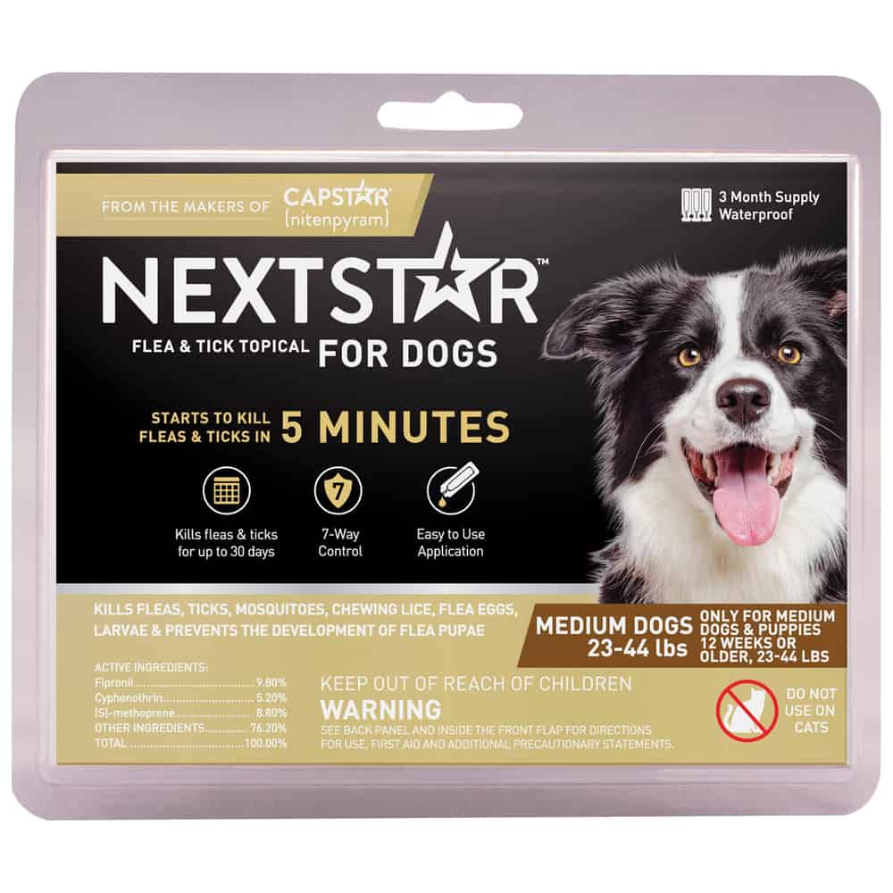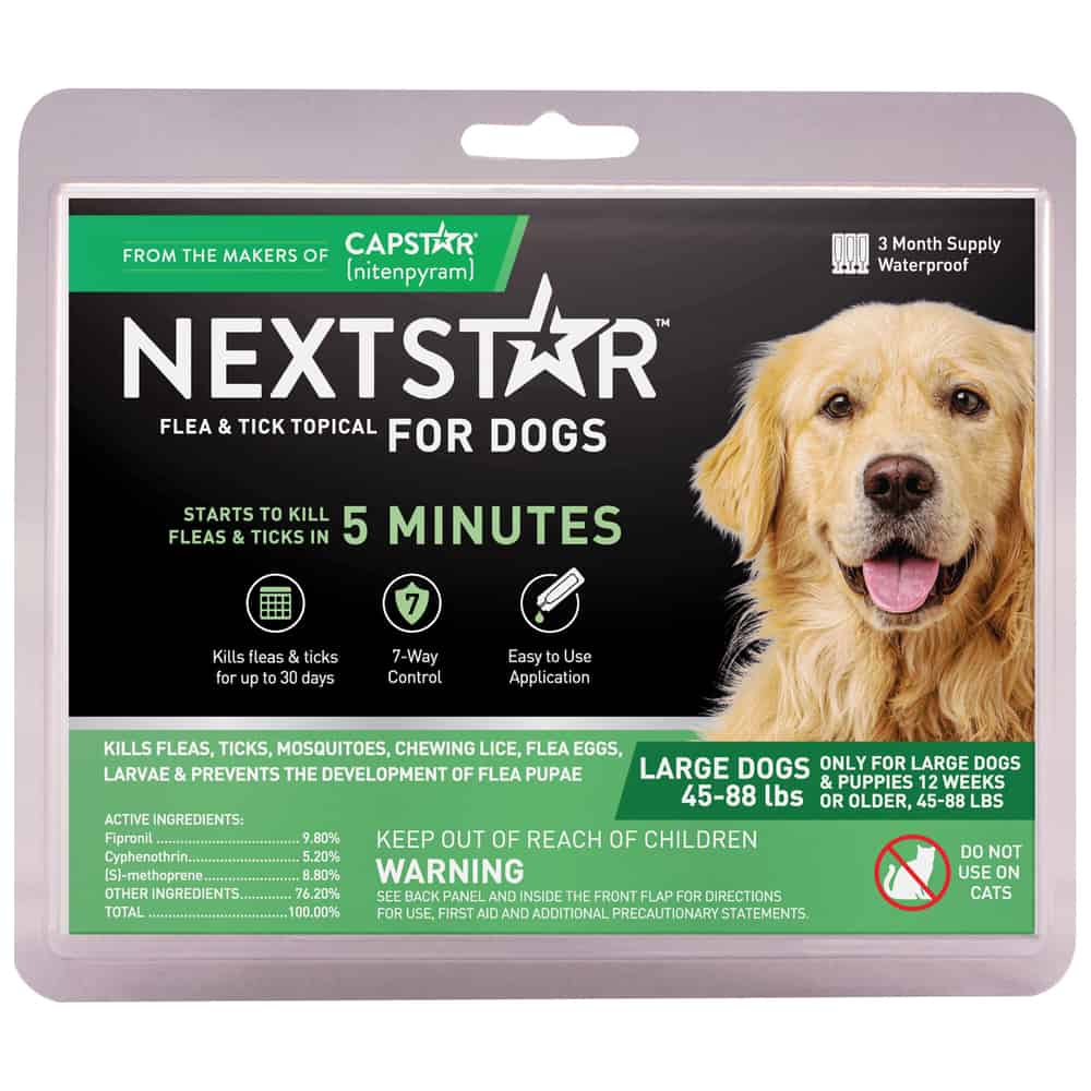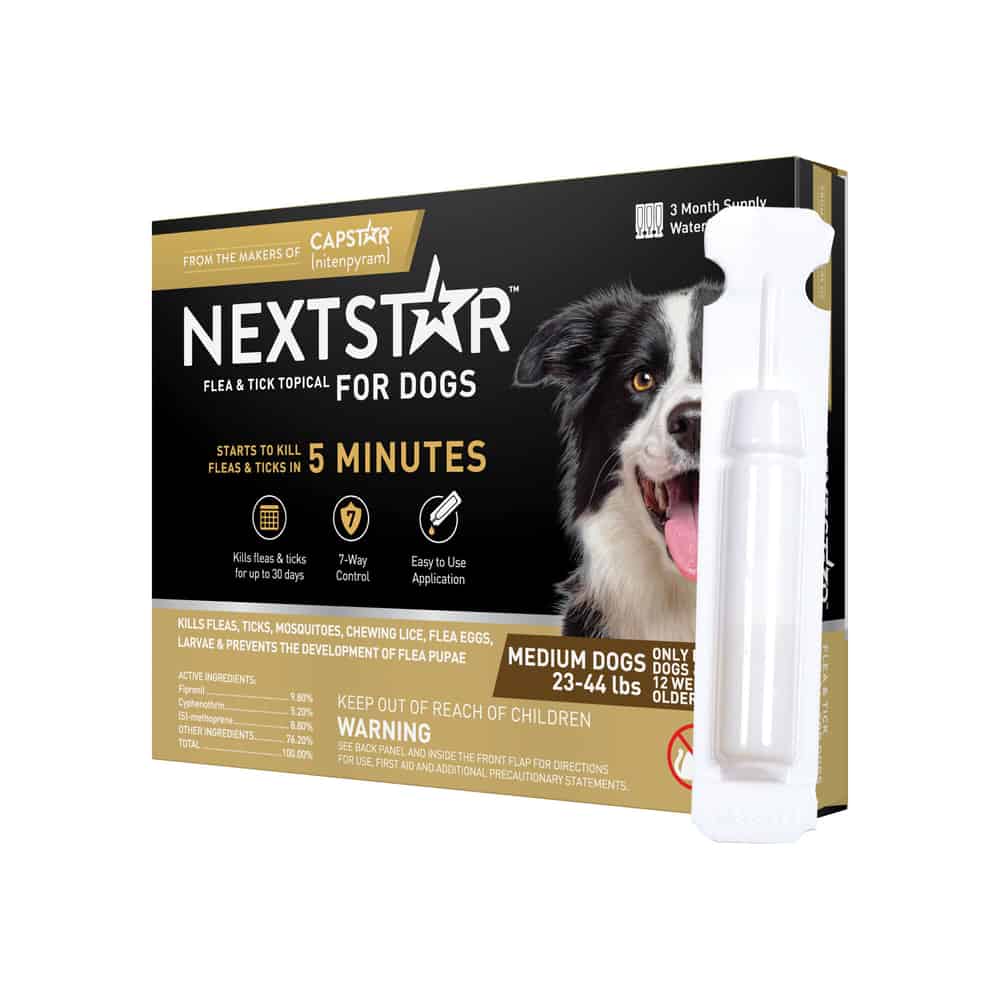 - NEXTSTAR Flea & Tick Topical provides effective dog flea and tick control for 30 days with just one application. This fast-acting waterproof topical kills fleas, ticks, mosquitoes, chewing lice, flea eggs, flea larvae, and prevents the development of flea pupae