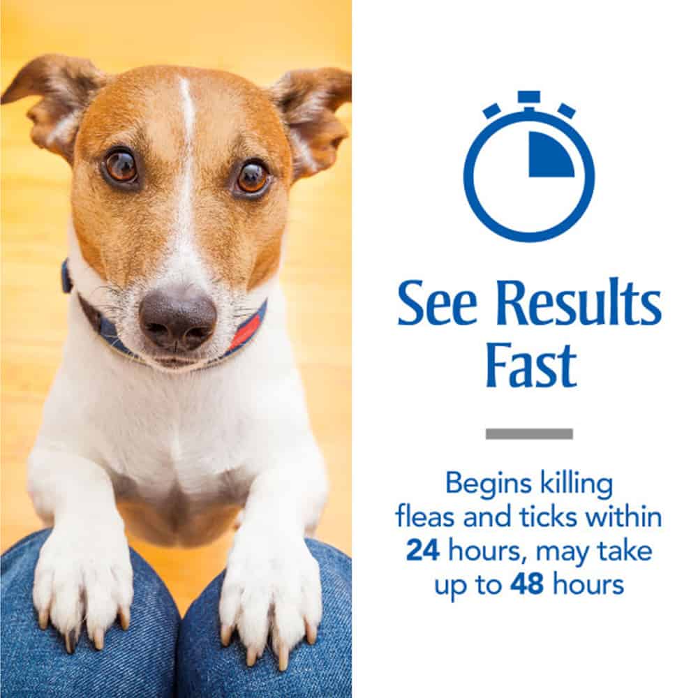 This fast-acting topical kills fleas, flea eggs, flea larvae, ticks and chewing lice for up to 30 days.