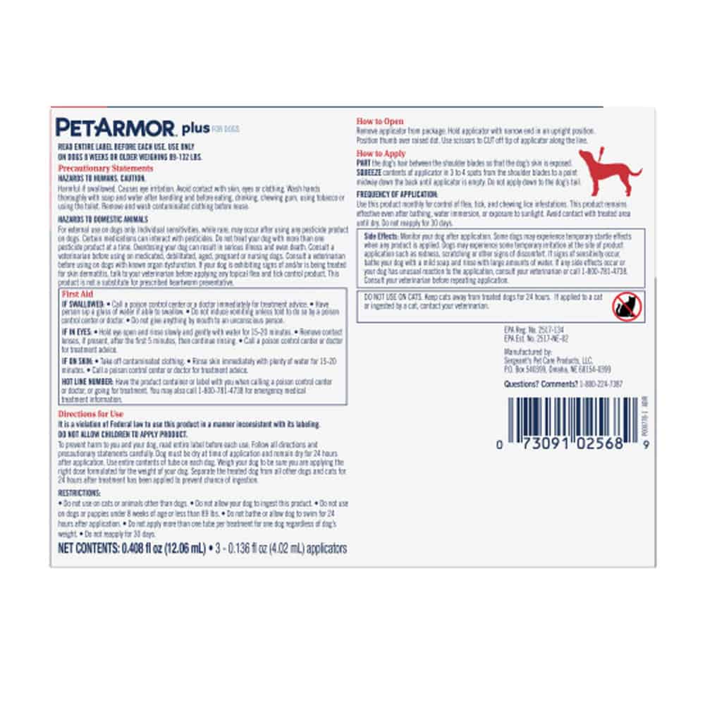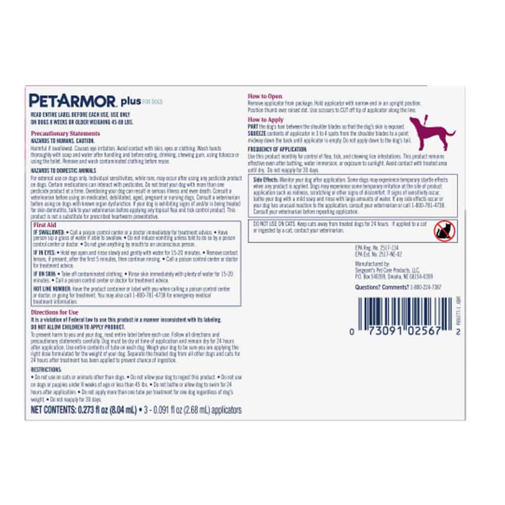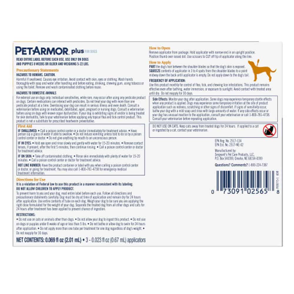 It is important to know your pet’s exact weight to select the correct dose. Do not attempt to split doses between pets. PetArmor Plus for Dogs should not be used on cats, and PetArmor Plus for Cats should not be used on dogs.