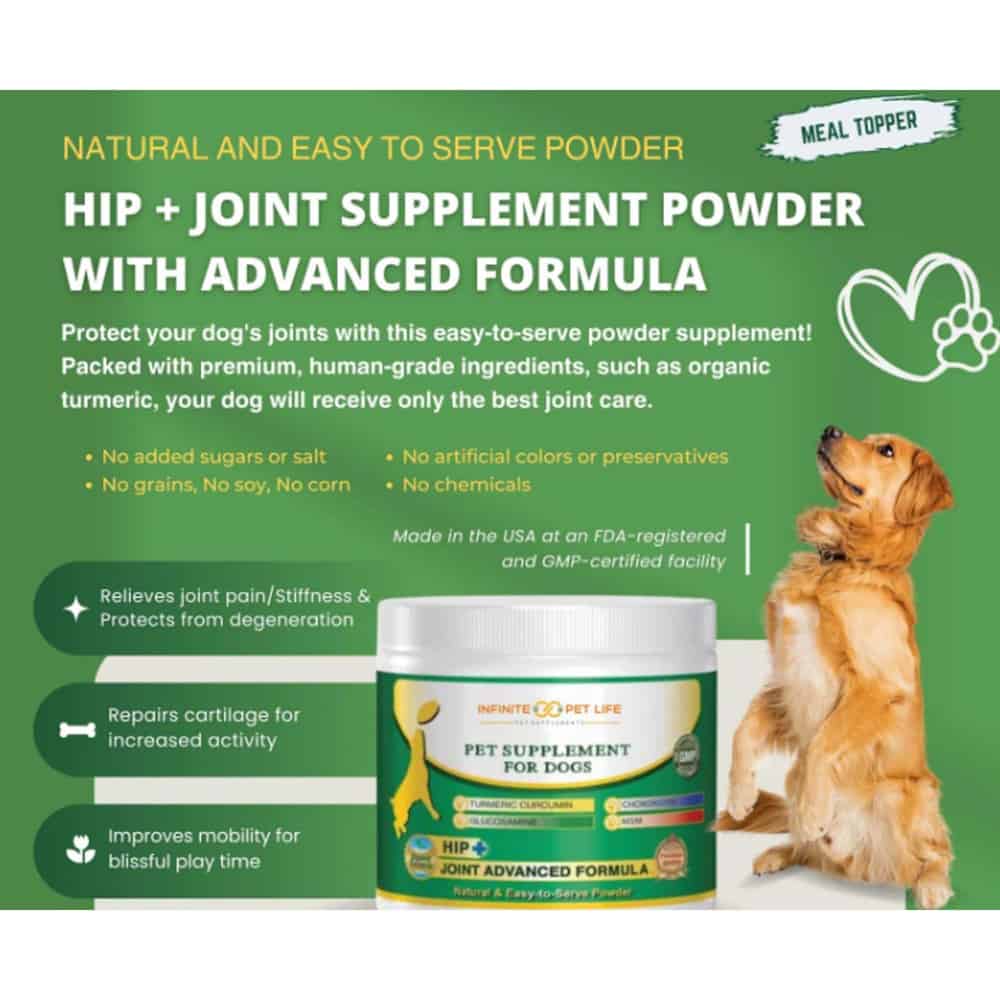 Infinite Pet Life Advanced Hip & Joint Supplement Powder + Meal Topper for Dogs Active Ingredients: