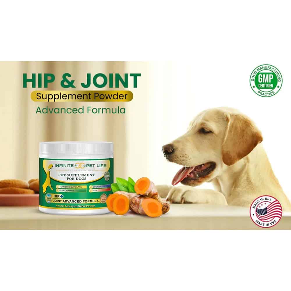 - Renew Joint Health: Infinite Pet Life Dog Supplement and Vitamins Powder is prepared with Turmeric, Curcumin, Glucosamine, Chondroitin, and MSM.