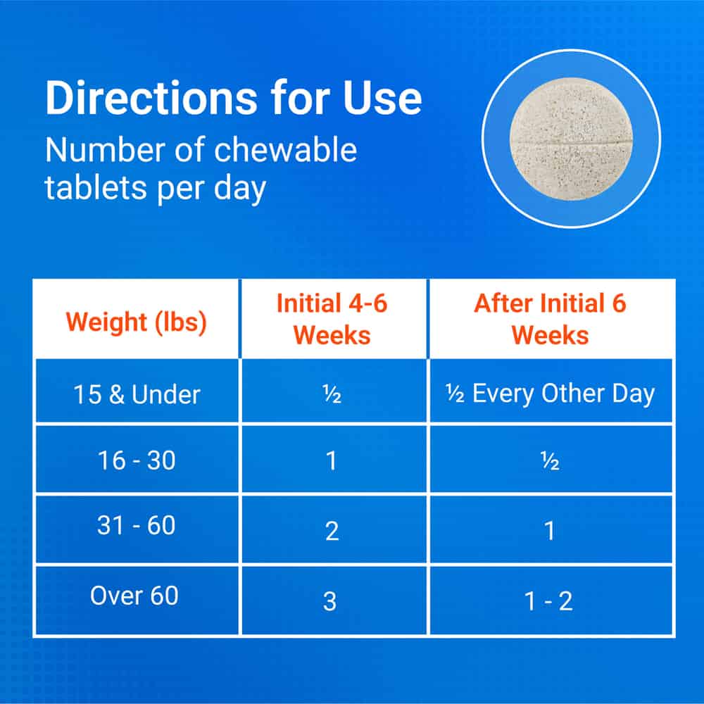 - The recommended initial period is 4-6 weeks; however, some dogs may respond sooner. The number of chewable tablets may then be reduced to the maintenance level.