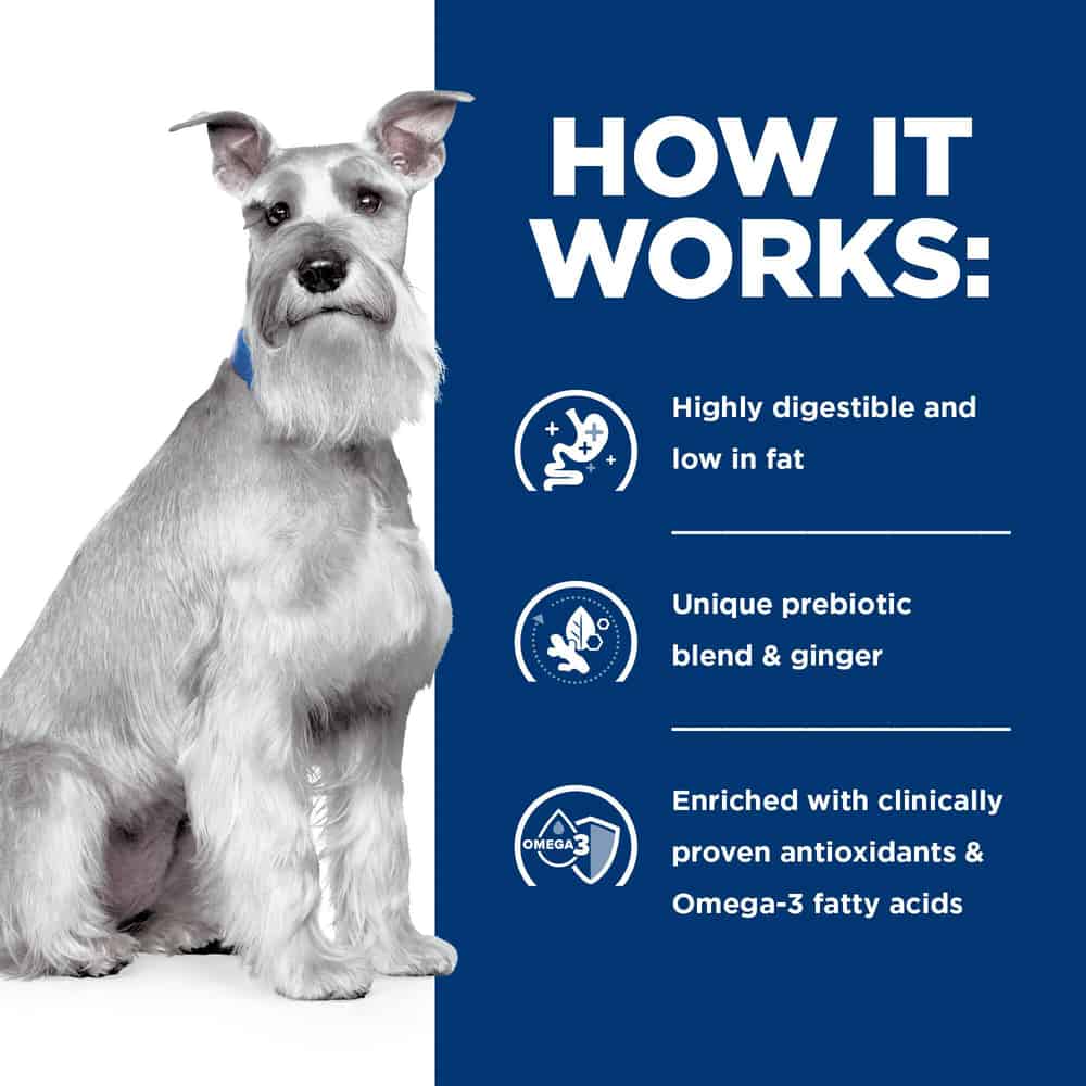 How does Hill's Prescription Diet i/d Low Fat Digestive Care Chicken Flavor Dry Dog Food work?