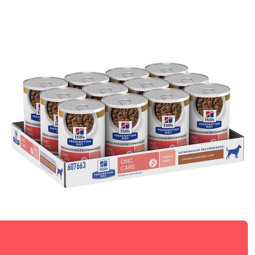 - Hill's Prescription Diet ONC Care Chicken & Vegetable Stew Dog Food is a veterinary diet specially formulated by Hill’s nutritionists and veterinarians to help pets fighting cancer