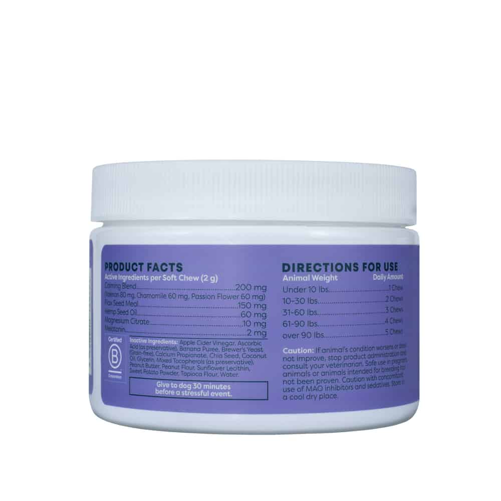 | Calming Blend (Valerian, Chamomile, & Passion Flower), Flax Seed Meal, Hemp Seed Oil, Magnesium Citrate, Melatonin |