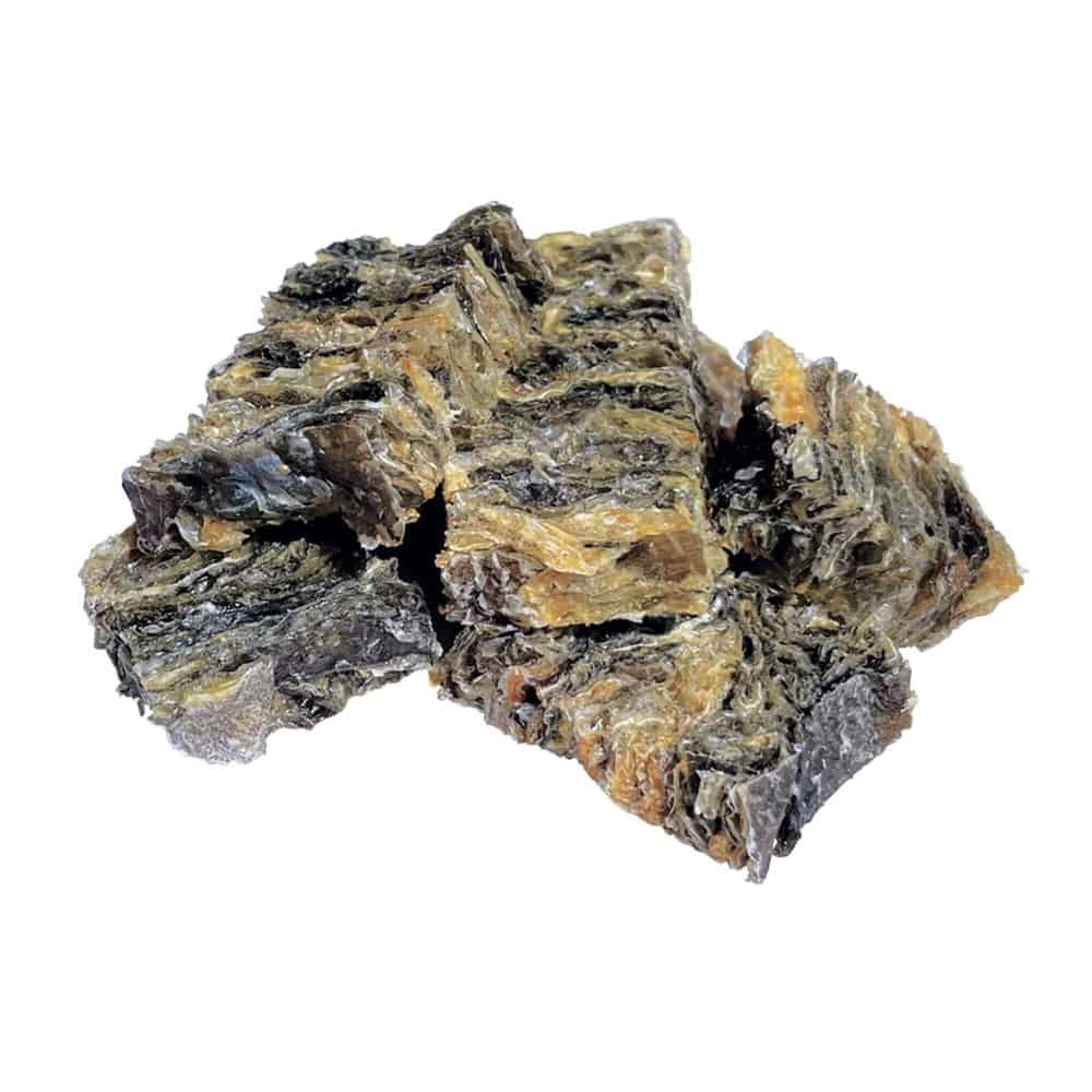 | Ingredients: Crude Protein (min) 82% Crude Fat (min) 2% Crude Fibre (max) 0% Moisture (max) 10% Other ingredients: Cod skins [Calorie Content: ME (Calculated): 0.95 kcal/gm or 8.0 kcal/treat] |