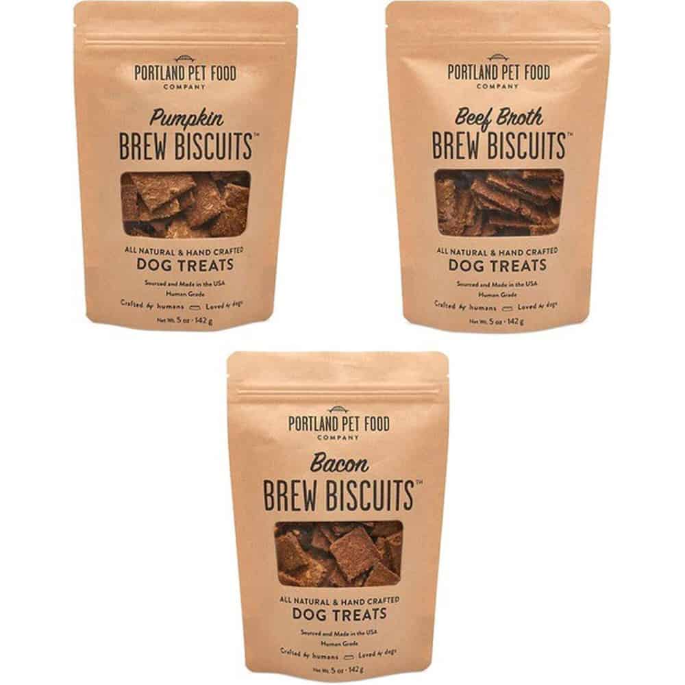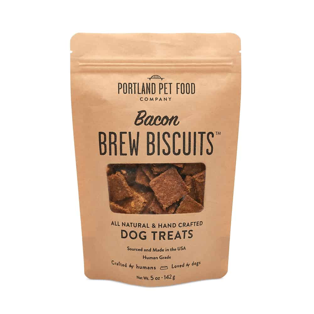 - Give Portland Pet Food Company Bacon Original Brew Biscuits to your dog as a treat or when rewarding good behavior.