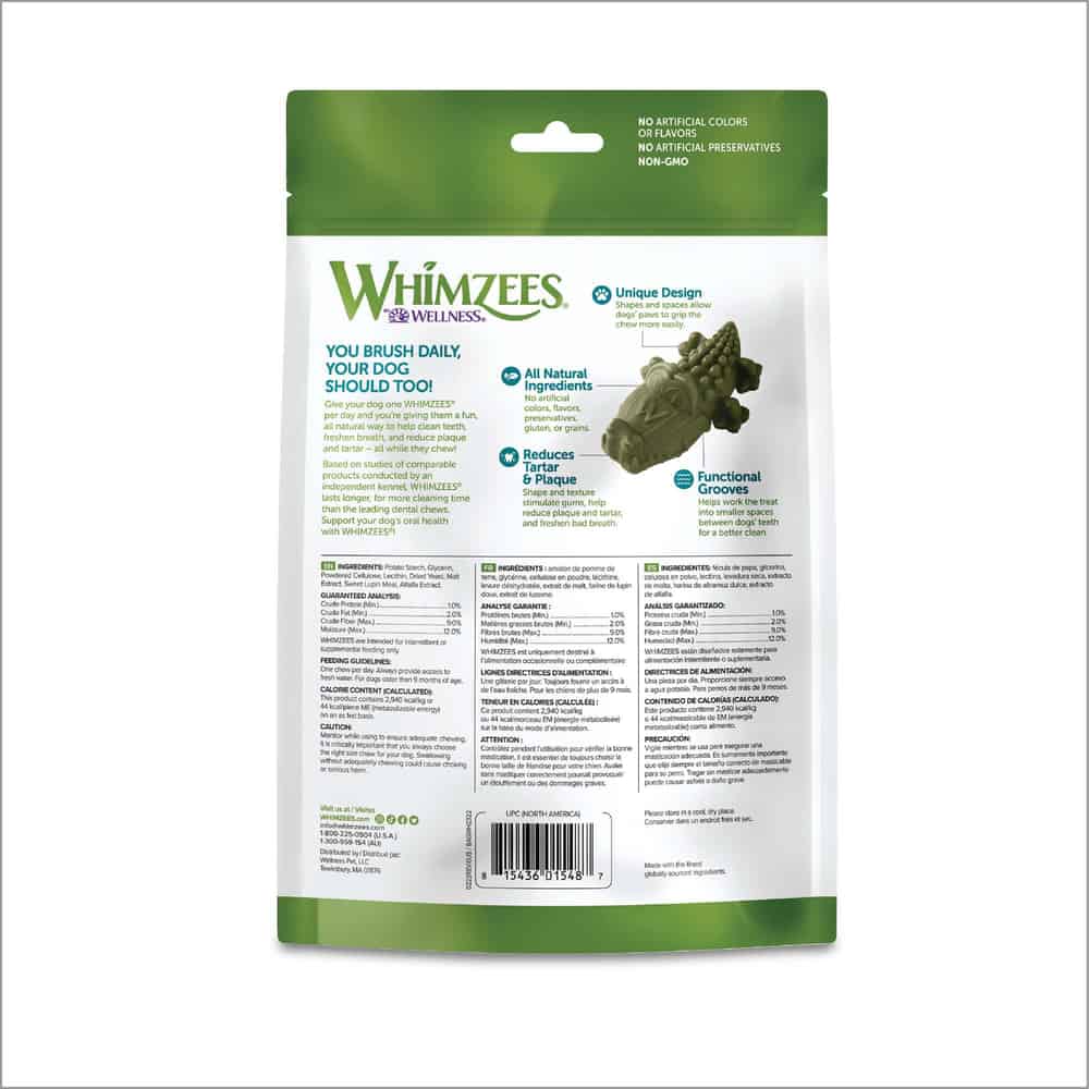 Whimzees by Wellness Alligator Natural Grain Free Dental Chews for Dogs