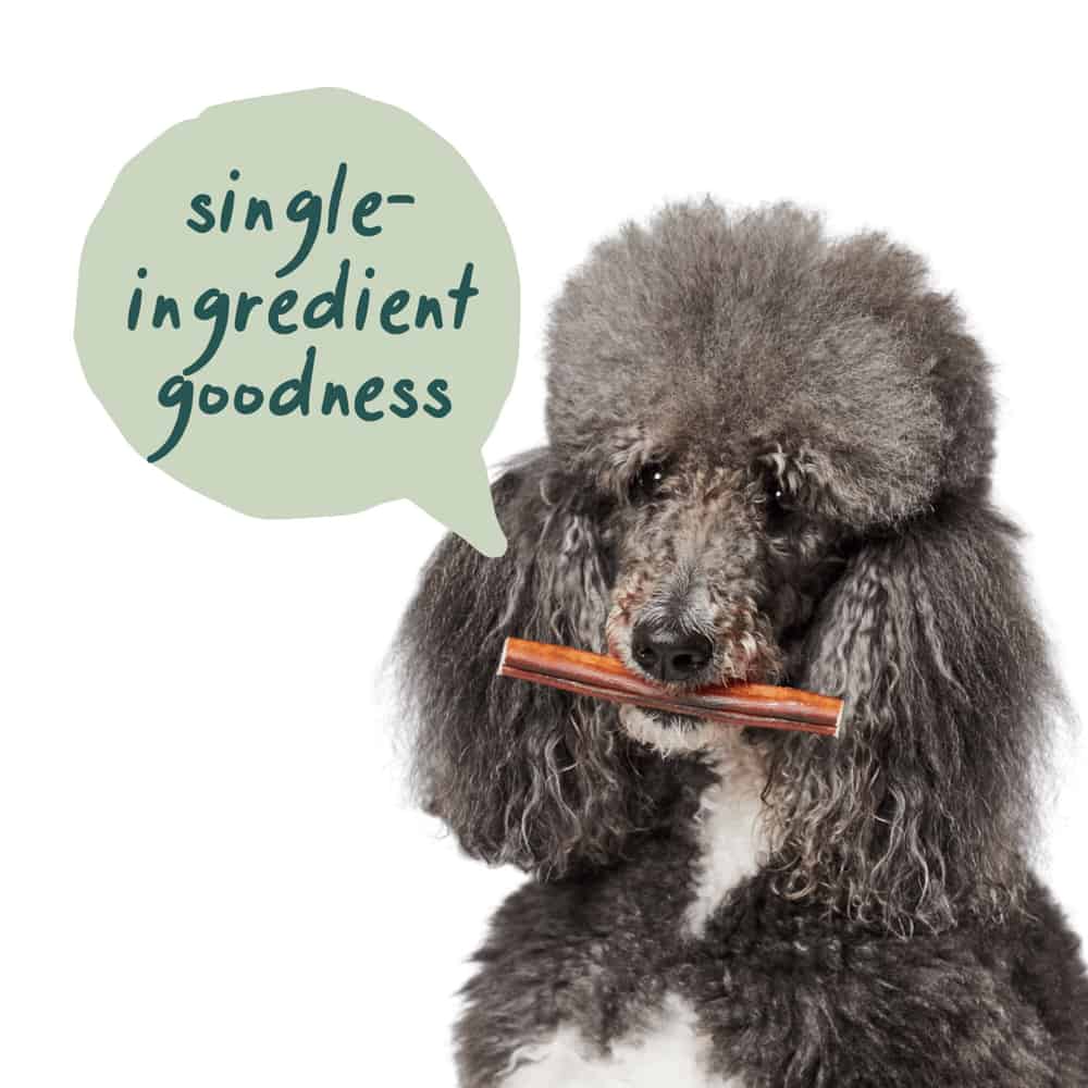 - Single ingredient chews, made from free-range, grass-fed cattle.