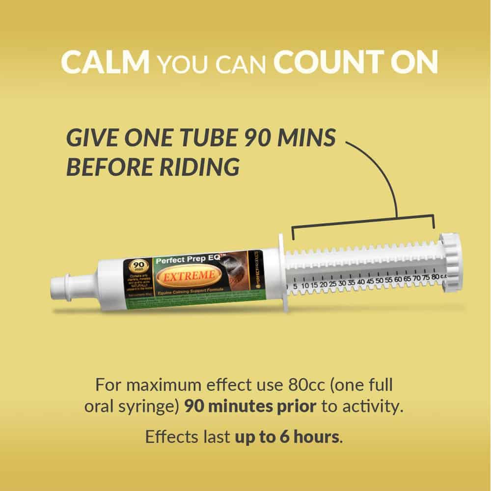For Best Results: Because every horse has unique challenges, we’ve created a system of calming formulas to help you bring the very best horse to your performance every time. Perfect Prep EQ™ Extreme alone or as part of the Perfect Prep EQ™ Calming System. We strongly encourage you to evaluate the effects Perfect Prep EQ™ before your event to find the best product or combination of products to suit your horse’s needs.